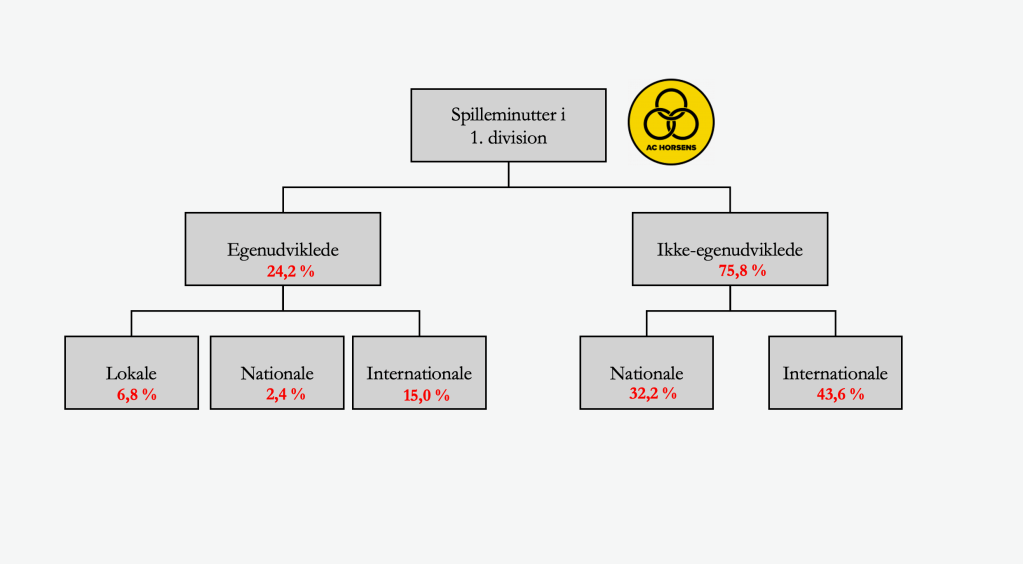 For sæsonen 2025/2026 er det gennemsnitlige niveau for egenudviklede spilleminutter i Superligaen faldet til et historisk lavpunkt på 19,8 %.